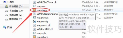 5、 在该文件夹中查找名为wmplayer的程序,具体位置见图示。