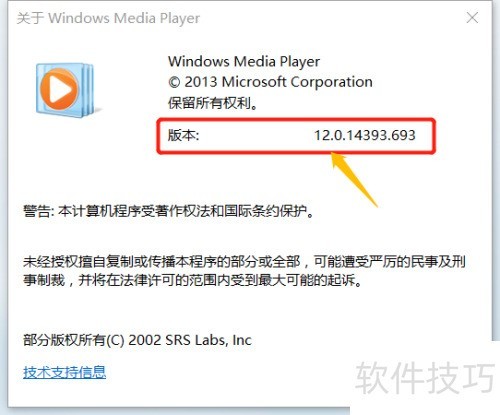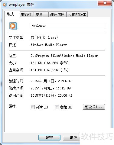 7、 切换到对话框中的详细信息选项卡,即可查看文件版本信息,其中开头的数字12代表该文件对应的是Windows Media Player 12版本。