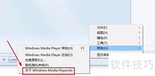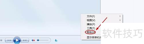 9、 点击后会弹出播放器界面,在底部按钮处右键单击,选择帮助菜单,随后点击关于 Windows Media Player,此时弹出的窗口中即可看到版本号信息,具体显示所示。操作简单直观,方便用户快速查看当前播放器版本。