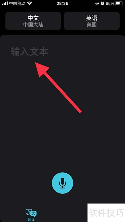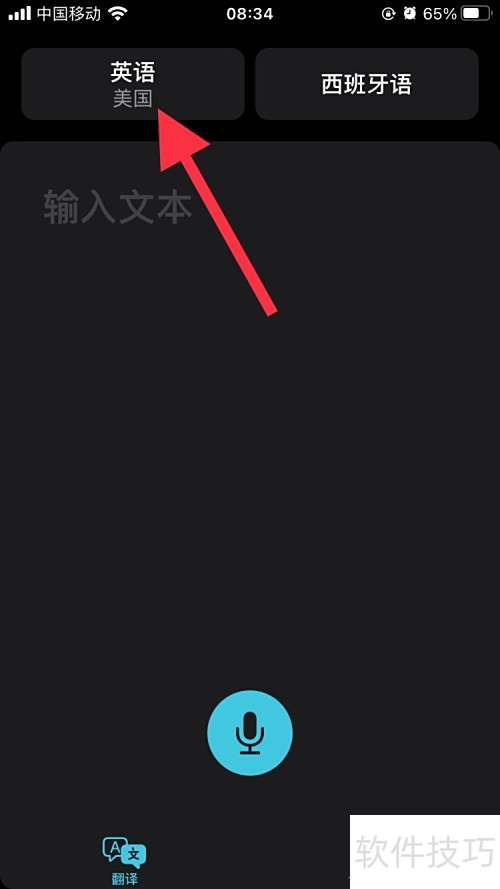 1、 打开手机翻译应用,进入界面后,点击左上角方框切换语言。