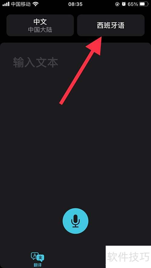 3、 返回主界面,点击右上角方框,选择需翻译的语言种类。