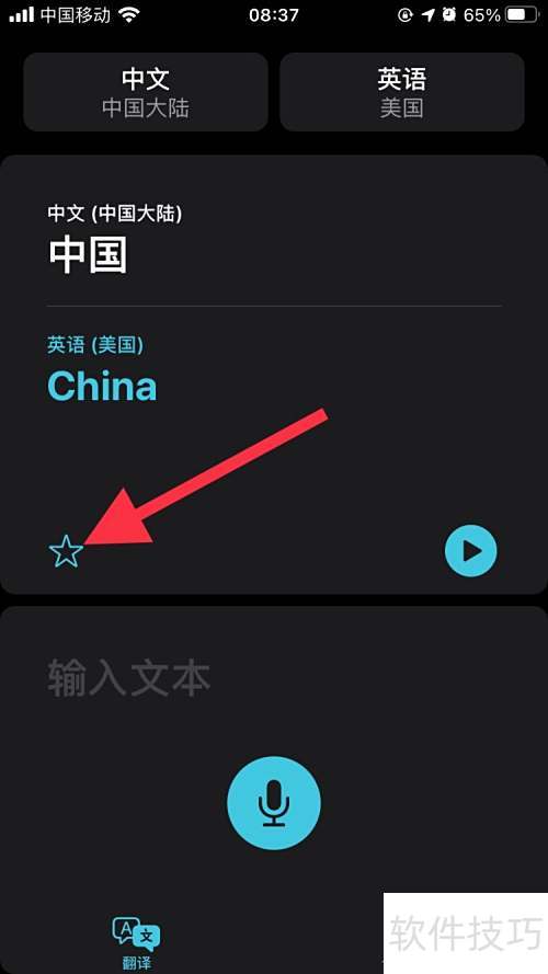 6、 如需收藏翻译内容,可点击界面中的五角星图标进行保存。