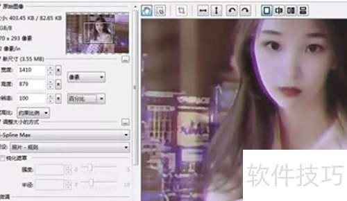 2、 将图片尺寸调整为1410×879像素,分辨率设为100,右侧界面立即显示调整后的预览效果。