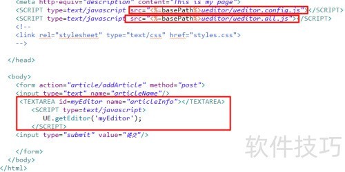 7、 在项目中需要的位置添加红框内的代码,其中TEXTAREA的name属性值即为对应字段的值。