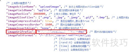 5、 将config.json文件中的imageUrlPrefix值修改为项目在浏览器中访问时从根路径到项目名称的完整地址,注意此处层级比上一步少一级,请根据实际路径进行调整。