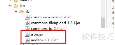 11、 如果上传单张图片的按钮无法点击,只需将编辑器文件夹中的相关包复制到项目lib目录下即可,红框标注的部分是关键,其余文件通常已存在。配置至此完成,祝你操作顺利成功。