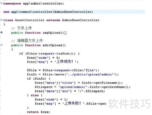 12、 以下是使用ThinkPHP5编写的编辑器图片上传接口代码示例。