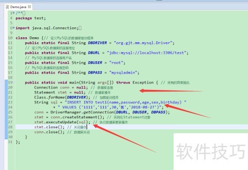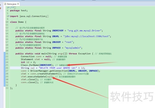 5、 使用Java向test表增删数据时,主要步骤包括:加载数据库驱动程序,建立数据库连接,实例化Statement对象,执行更新操作,进行数据库数据操作,最后依次关闭Statement和数据库连接,确保资源释放,操作完整有序完成。