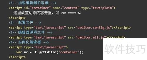 3、 在ASP中调用编辑器非常简便,只需将指定源代码插入到添加文章的动态网页表单内即可完成。特别注意,需确保代码中对ueditor.config.js与ueditor.all.js文件的引用路径正确无误,这样编辑器才能正常加载和使用,从而实现富文本内容的编辑功能。