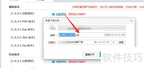 3、 所示,找到并修改对应版本即可使用,点击后会弹出下载。下载完成后,找到压缩包并解压,获取其中的ueditor文件夹及其内容,无需额外包裹div,直接解压至最内层即可。