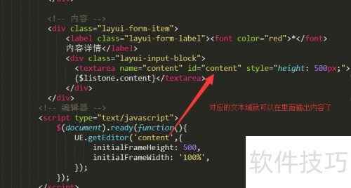 10、 通过文本域的id可在页面中直接加载编辑器,用户可直接在文本框内输入内容进行编辑。
