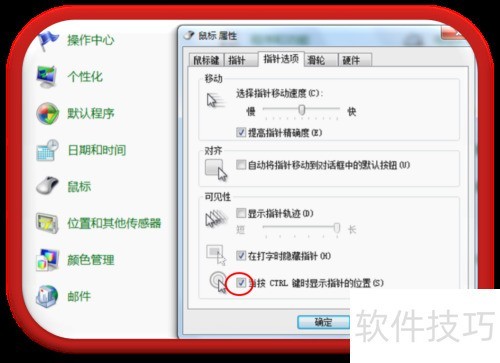 4、 按住Ctrl键可显示指针位置,勾选确认后生效,请大家尝试操作。