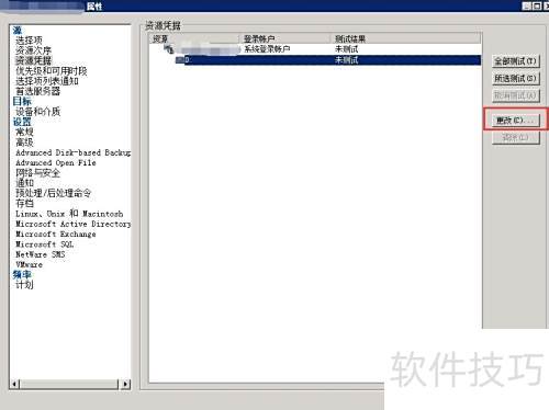 4、 打开作业监视器,选择需要操作的备份任务,右键点击并进入属性界面。在属性窗口中定位到资源凭据选项,点击右侧对应的资源链接,找到界面中的更改功能(示红框部分)。进入更改设置后,选择系统登录账户,并点击下方红框中的编辑按钮,弹出密码修改窗口。在此输入新的管理员账户密码,确保信息准确无误。完成输入后,务必进行连接测试,确认新凭据可用。如测试结果显示成功,便可依照相同流程逐一更新其他备份计划的认证信息。每当域控制器的管理员密码变更时,这类重复性操作便随之而来,颇为繁琐。目前我所管理的备份任务仅有十余个,尚可手动处理,若数量庞大,则难以逐个调整。若有更高效的解决方案,欢迎分享交流,不胜感激。