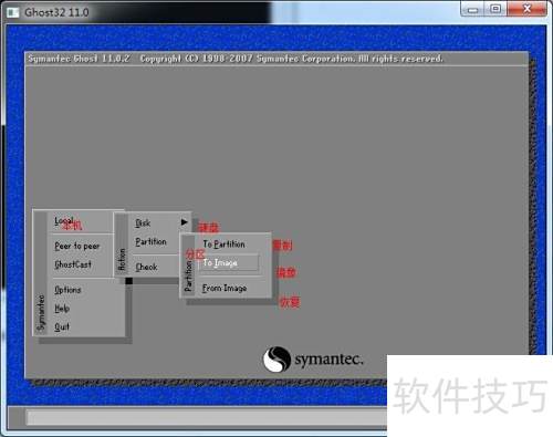 2、 界面上显示六个主菜单选项,依次选择本机进入后,点击分区,最后选择生成映像文件完成操作。