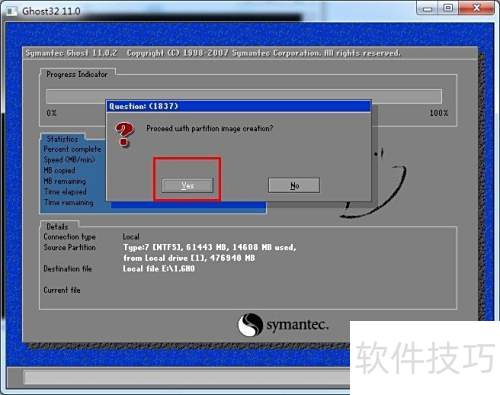 1、 运行一键Ghost后出现提示窗口,直接点击确定即可。