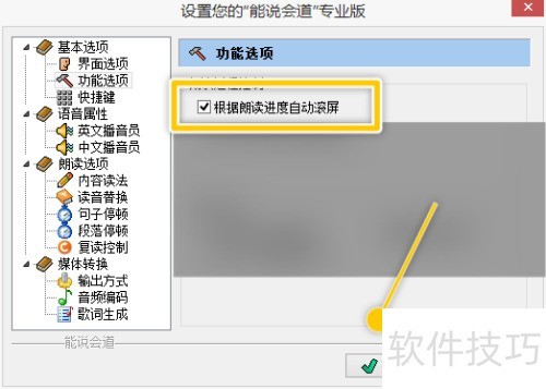 教你如何设置能说会道软件,实现朗读时页面自动跟随滚动。