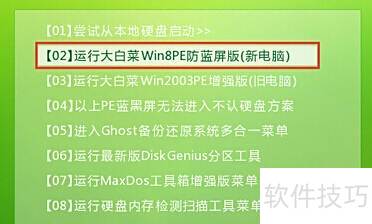 1、 将制作好的大白菜U盘插入电脑USB接口,重启进入大白菜主菜单,选择运行大白菜Win8PE优化版(新电脑)并按回车确认,进入相关操作界面,具体操作所示。