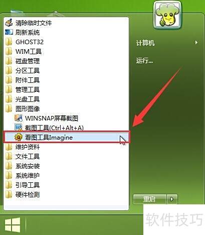 2、 进入Win8PE系统桌面后,打开开始菜单,选择图形图像类别中的看图工具Imagine并运行,操作所示。