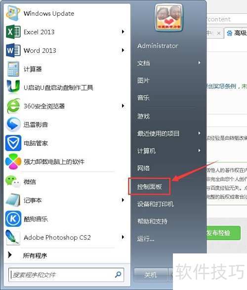 1、 打开开始菜...