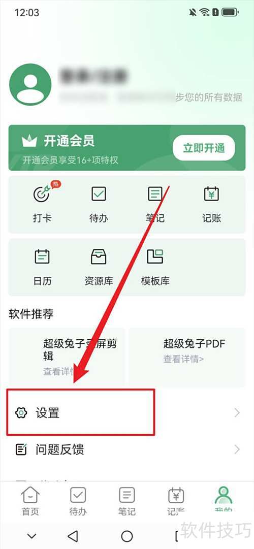 1、 打开超级兔子便签,点击底部我的进入个人页面。