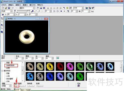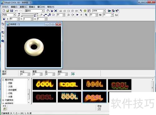 在Ulead Cool 3D中,利用插入几何对象功能可制作多种图形,下面将介绍如何创建一个蓝色的圆环效果,操作简单,便于掌握。