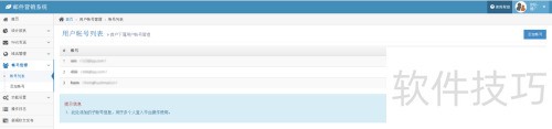 2、 进入账号管理中的账号列表,可查看并管理已设置的账号信息。