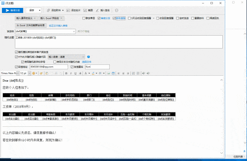 13、 批量发送邮件时,读取表格数据并动态插入对应参数内容。
