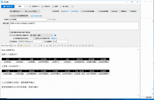 18、 表头为姓名,邮件内容中的{def}将自动替换为表格对应数据,例如生成邮件时显示为徐大。