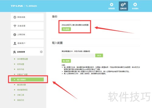 9、 进入路由器高级设置中的设备管理,选择备份当前配置即可完成操作。