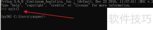 3、 输入exit()后按回车即可退出,操作所示。