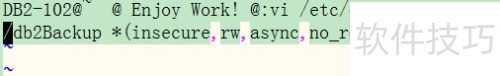 5、 第一列为服务器需输出的共享目录,本例中该目录为/db2Backup。