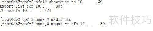 16、 首先检查NFS访问是否正常,确认返回结果可连通。随后在本地创建/home/nfs目录,并将其作为挂载点。使用mount命令并指定-f参数,表明以NFS类型将远程文件系统挂载至该目录,完成挂载操作。