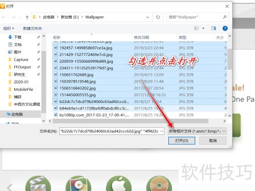 2、 在电脑中选中所需图片,支持多选,确认后点击打开即可。
