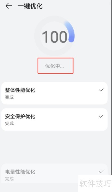 5、 手机管家优化后评分从96分提升至100分,效果显著,具体所示。