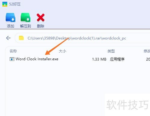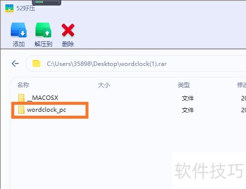 5、 打开第二个文件夹,找到后缀为exe的文件,即为Word Clock程序。