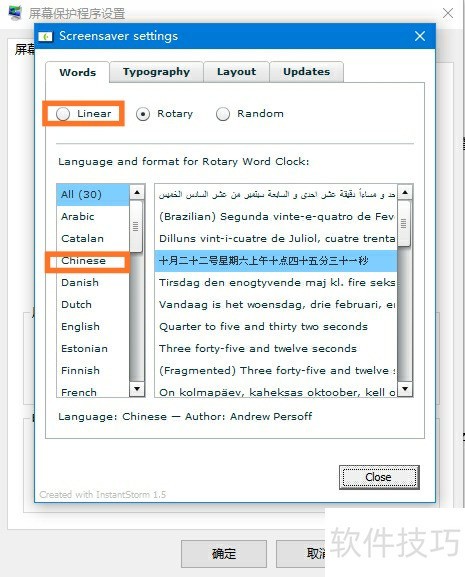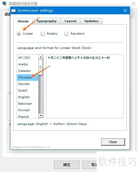 16、 选择文字排列方式为线性,语言设为中文,即简体中文显示。
