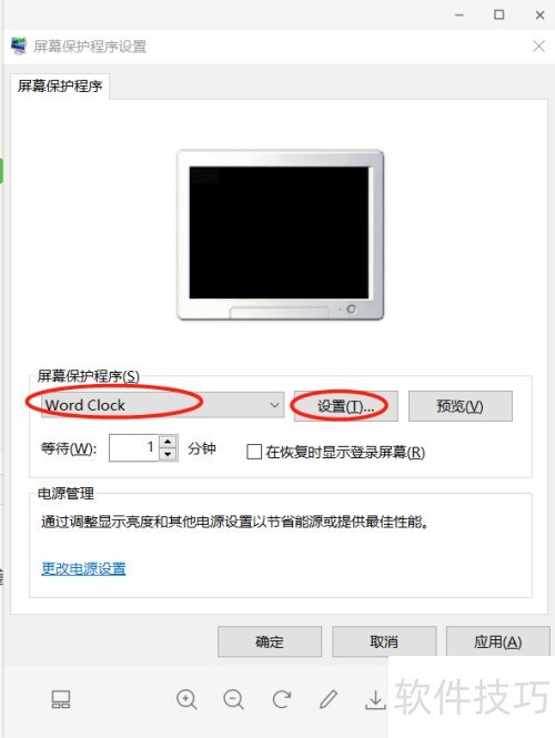 4、 选择Word时钟作为屏保,点击设置进入配置界面进行调整。