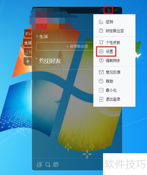 1、 按下Alt+Z快捷键,打开桌面便签并进入系统设置界面。