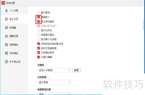 4、 开启桌面嵌入后,用户可在其下方启用禁止移动窗体功能,使便签固定于桌面,无法随意拖动,确保位置恒定,便于查看与使用。