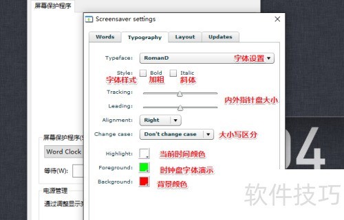 7、 所示,可按个人喜好自定义 word clock 的显示样式,详细设置内容请参考图示。