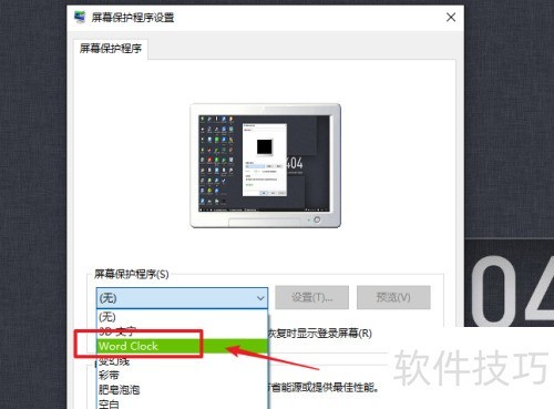 5、 选择屏幕保护程序中的word clock,点击其旁边的设置按钮进行配置。