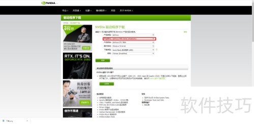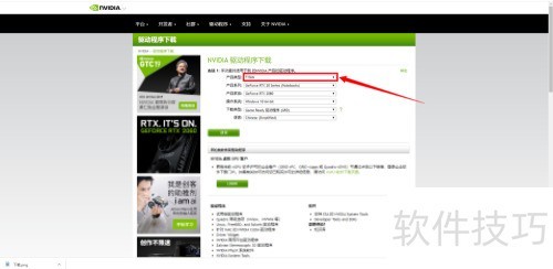 9、 前往NVIDIA官网驱动下载页面,选择对应的产品类别。