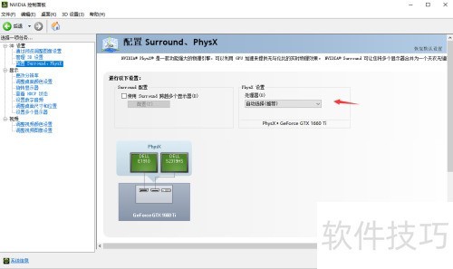 4、 四、在左侧菜单中找到并设置环绕声与PhysX选项。