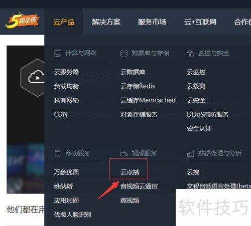 1、 登录腾讯云平台,进入云点播服务,操作所示。