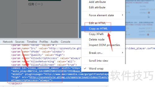 7、 视频变灰后,查找页面中同样呈灰色或阴影状态的代码部分,这就是所需的视频HTML代码,复制到网页或博客中即可使用。