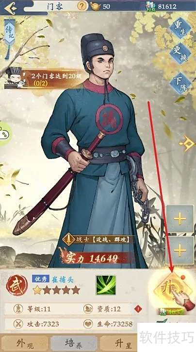 2、 进入界面,选择需升级的门客点击