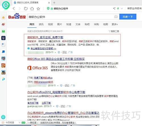 3、 第三步,在百度搜索微软办公软件相关资源。