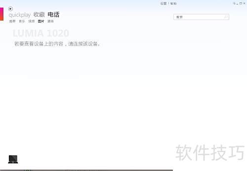 2、 通过USB线连接手机与电脑,启动ZUNE软件,点击界面左下角的手机标识即可。