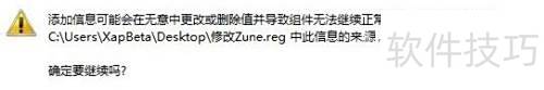 12、 双击Zune.reg文件,注册表编辑器弹出后点击是确认修改。