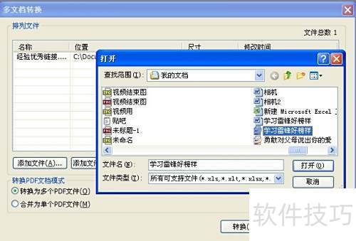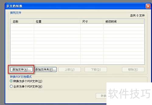7、 弹出对话框后,可选择添加一个或多个PDF文件。